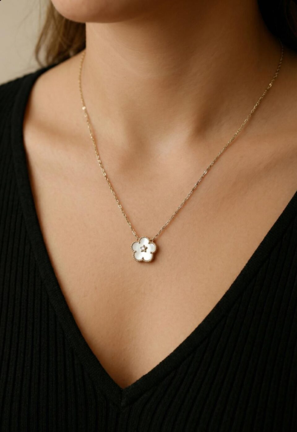 An iconic and sophisticated piece crafted in 14k gold. This necklace features multiple four-leaf clover motifs evenly spaced along a delicate chain, creating a balanced and high-fashion look. Its timeless design makes it a versatile statement piece for any elegant occasion.