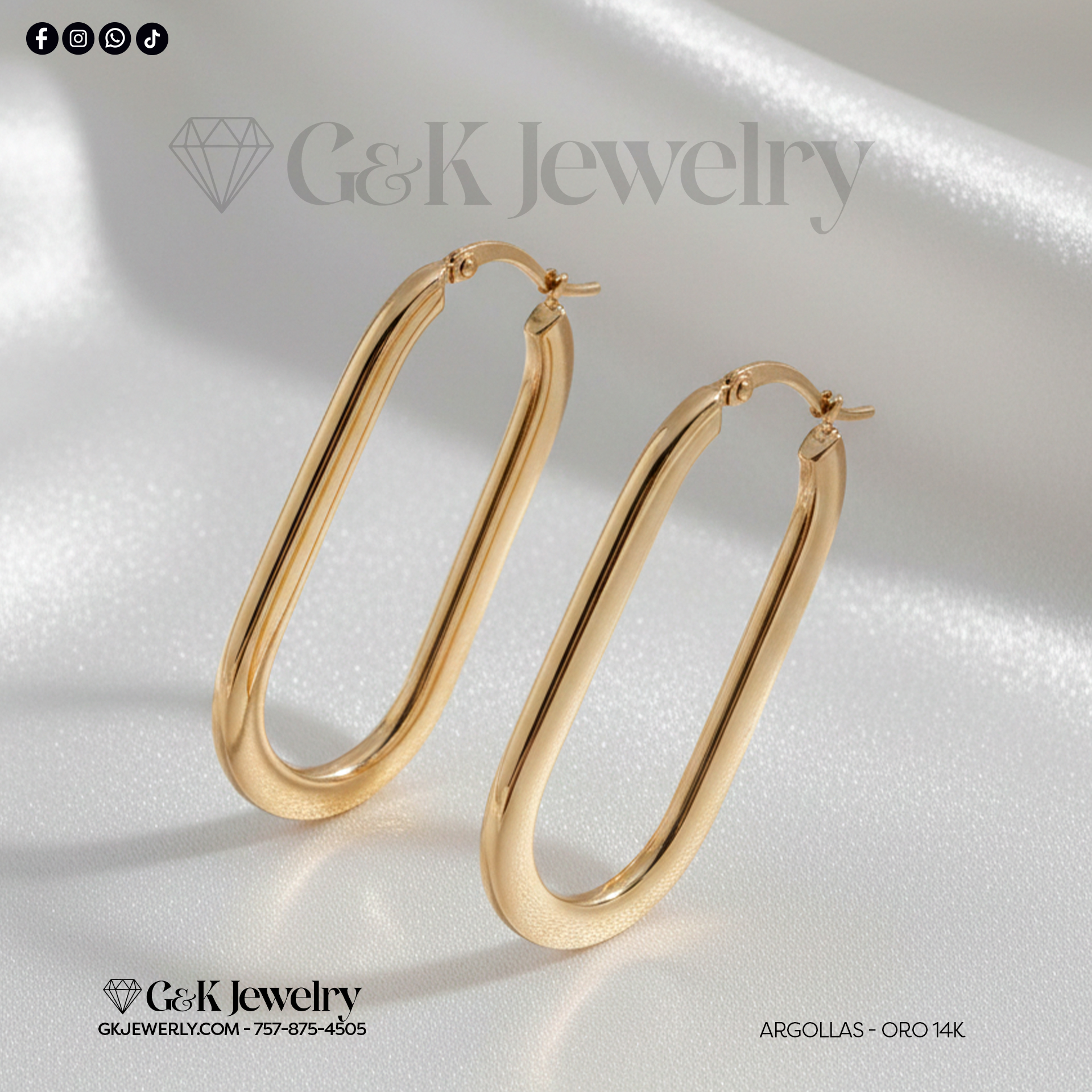 Elegant and contemporary, these 14k gold hoop earrings feature a distinctive elongated oval silhouette. The smooth, high-polish finish on the tubular design creates a sophisticated vertical line that elongates the neck and adds a modern touch to a classic style.